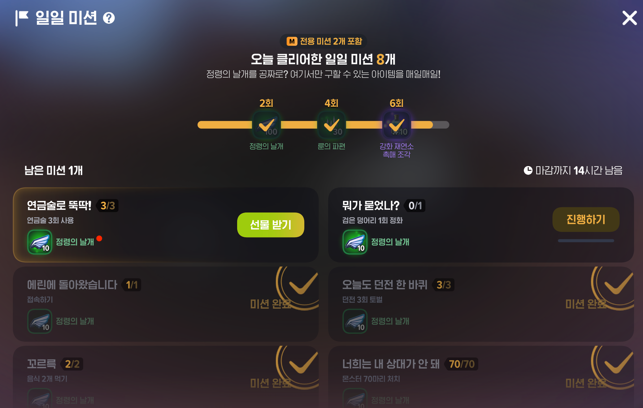 총 6개의 미션을 클리어해야